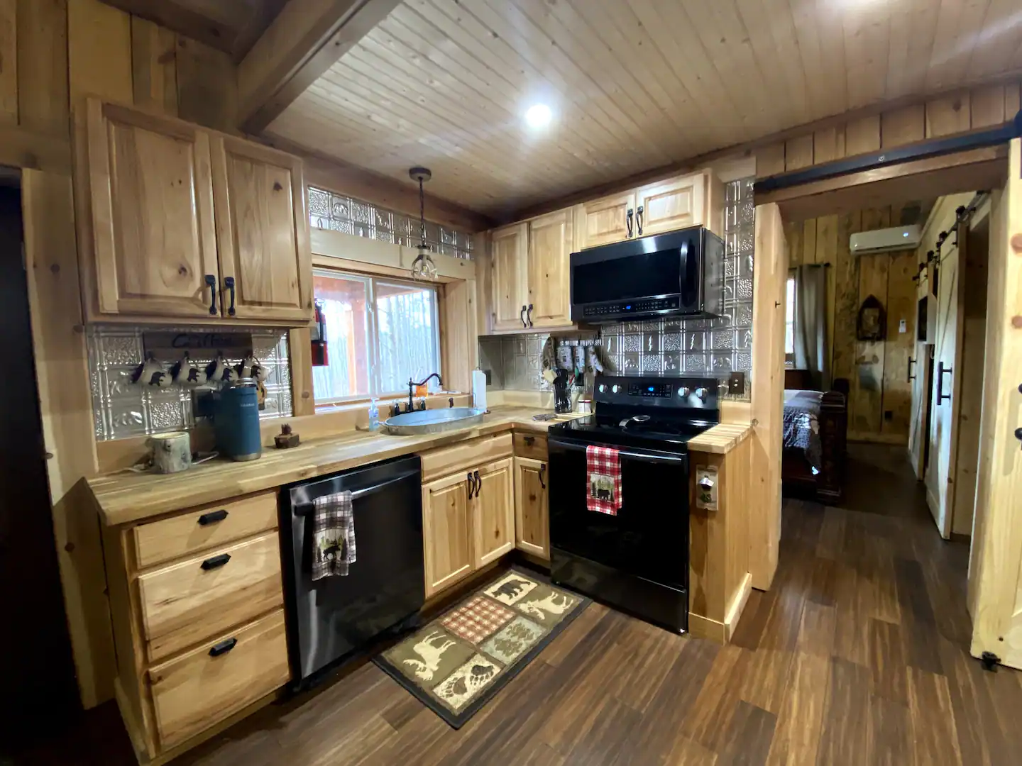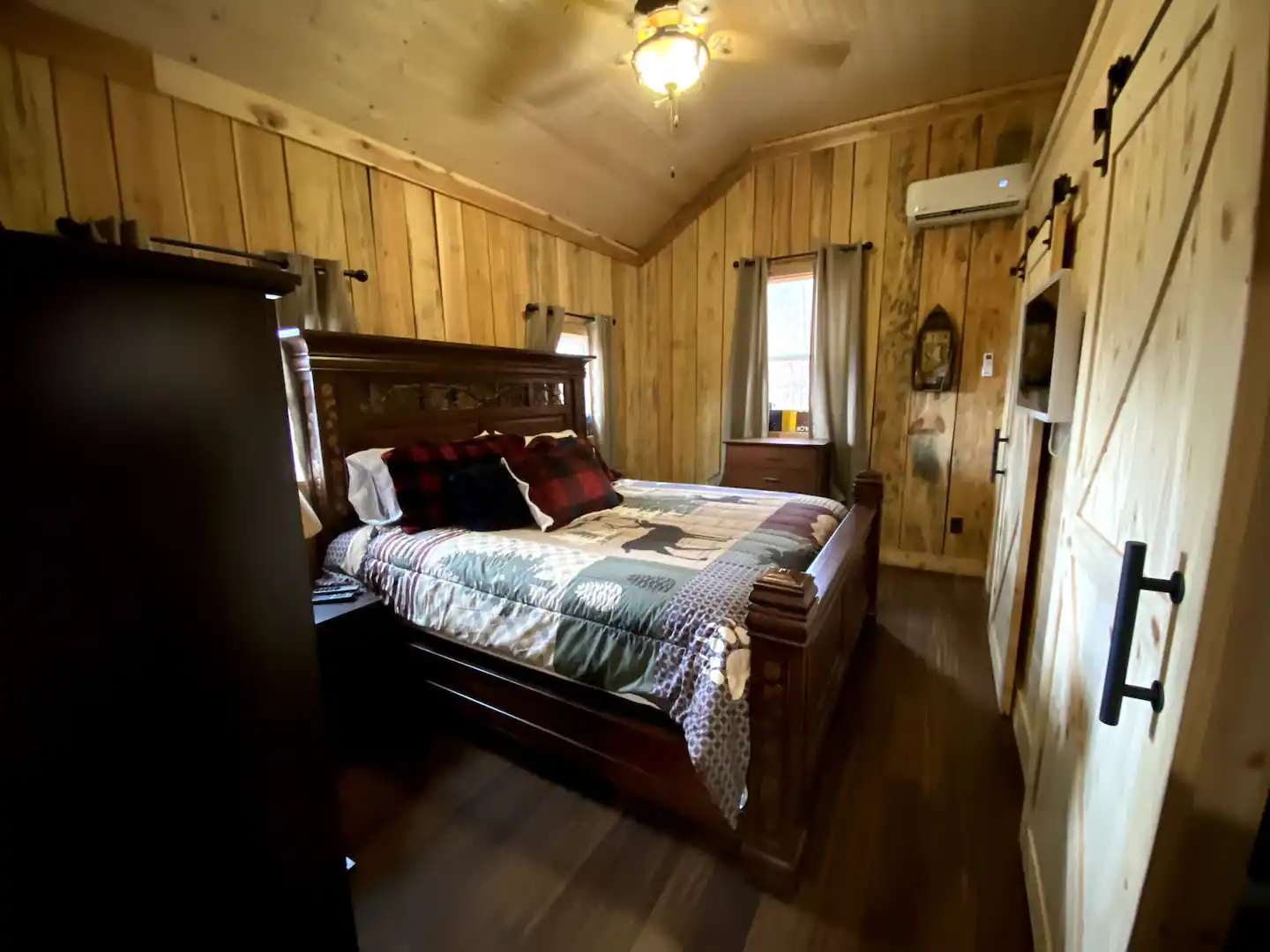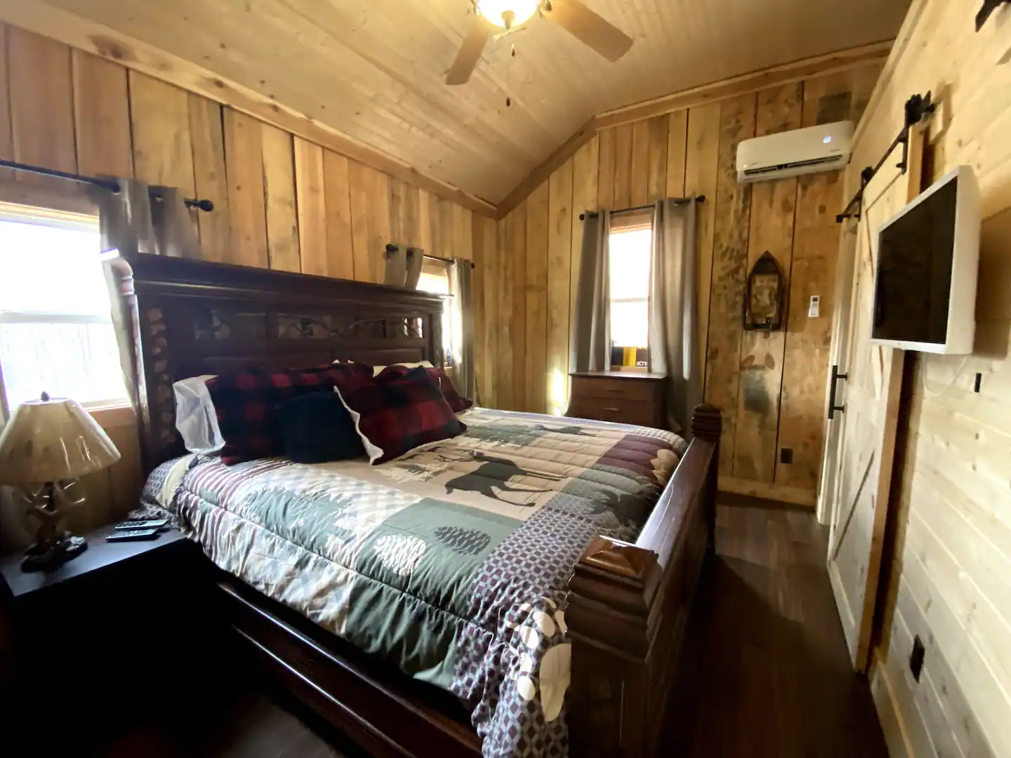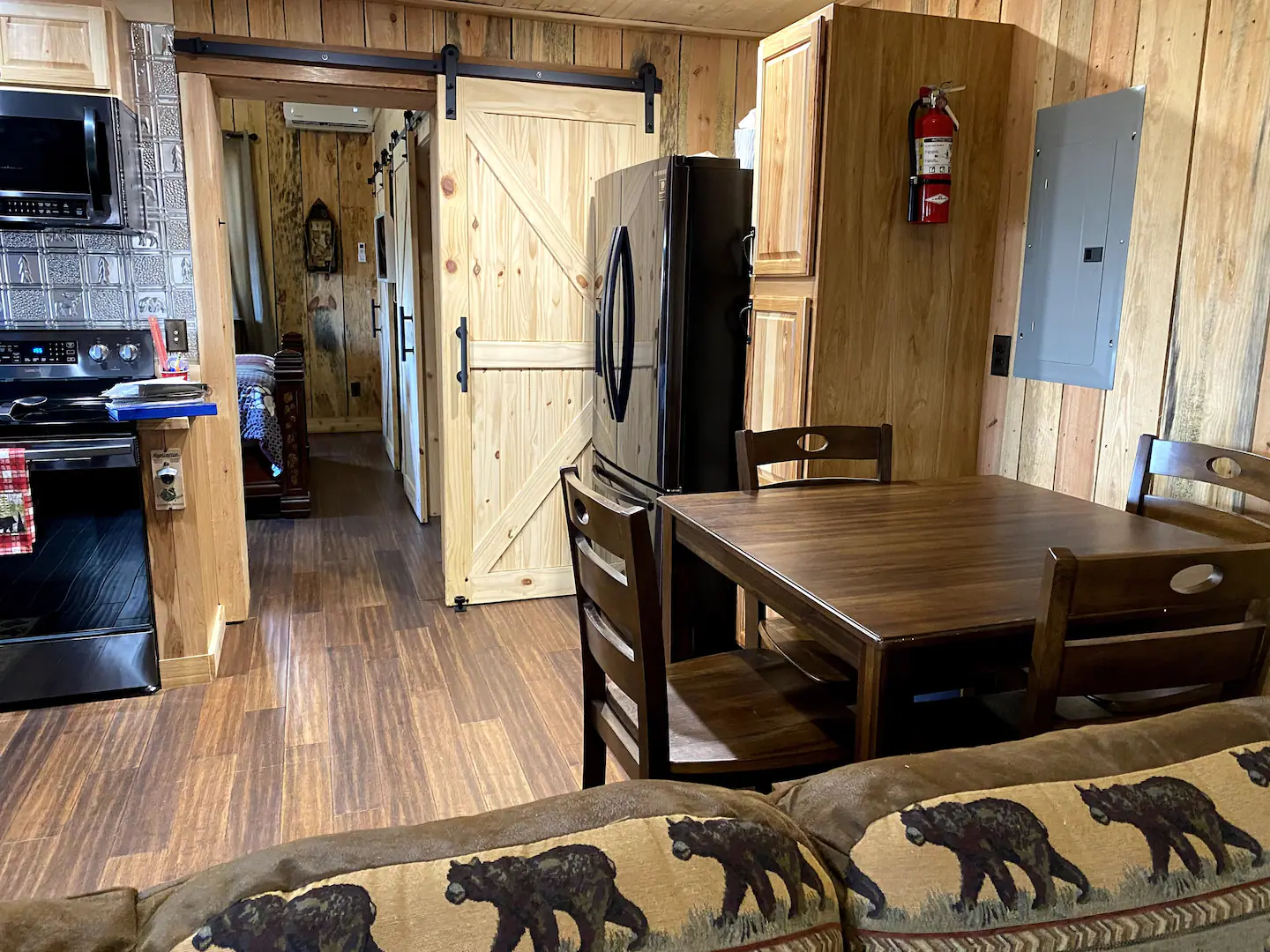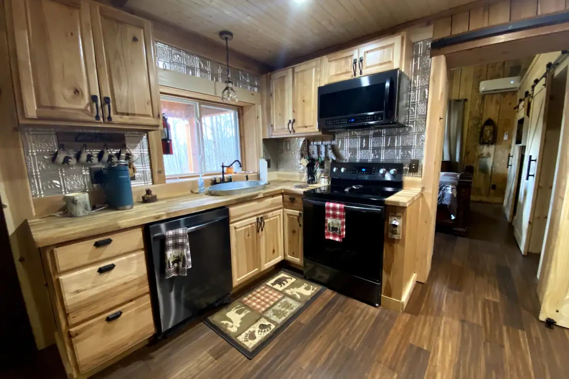 The cabin includes is a one bedroom consisting of an King adjustable bed, 1 bath with shower only. There is a queen pull out sofa in the living area. The kitchen provides all you need to cook a gourmet meal with ease.Guest access